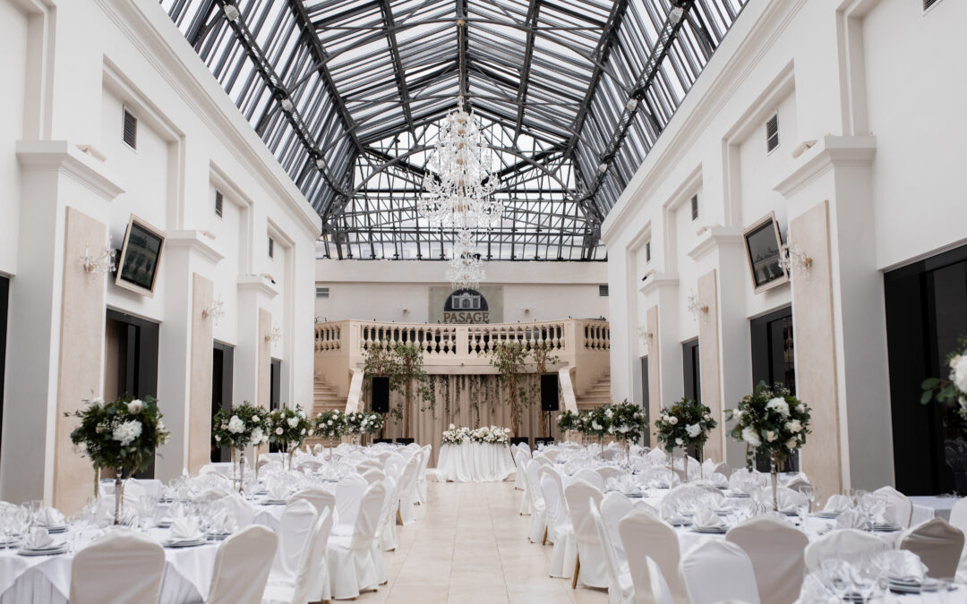 - Ballroom or banquet hall. Timeless and elegant, ideal for black-tie celebrations.