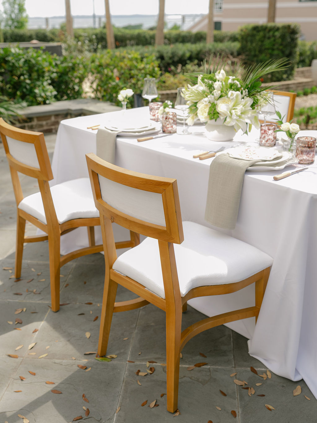 The shoreline chair frame can be interchangeable with a linen back or a rattan back.